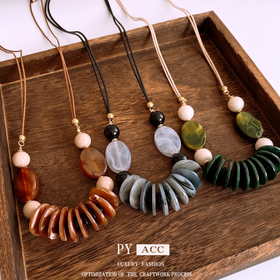 European and American Cross-Border Retro Bohemian Plastic Beads Beaded Hand-Knotted Necklace Women's Bead Pendant Necklace