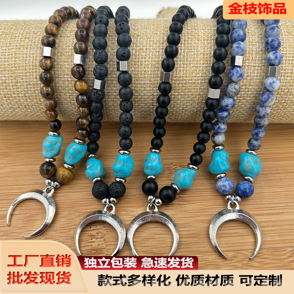 Cross-Border Popular Bohemian Style Clavicle Chain with Natural Stone and Titanium Steel Beads, Vintage Sweater Chain, Stunning Turquoise Necklace