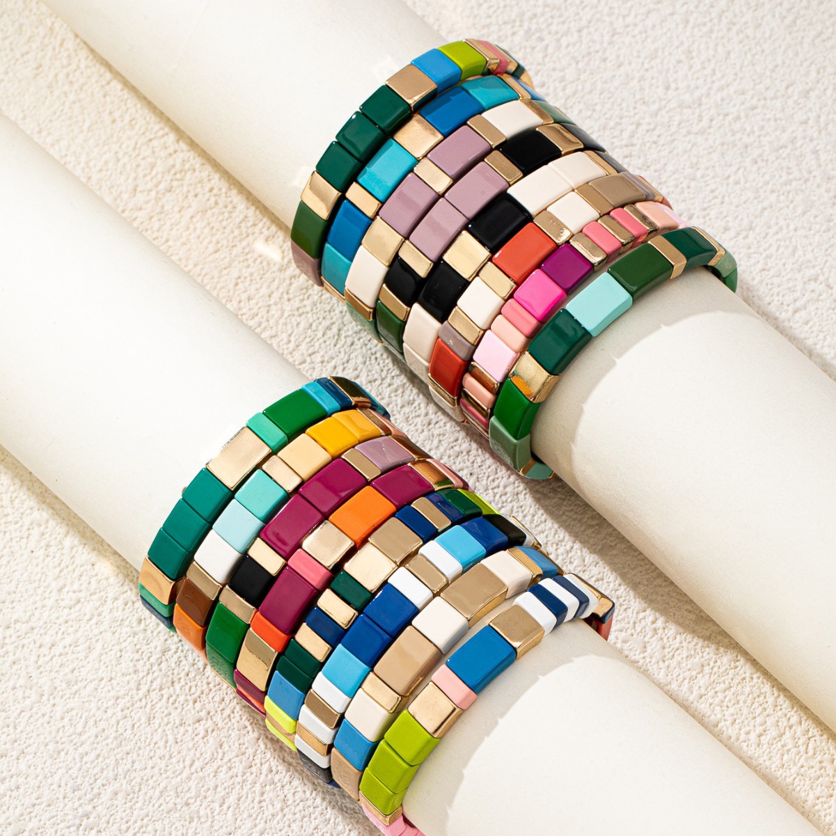 Cross-Border European and American Fashion Enamel Alloy Paint Candy Color Bracelet Simple Bohemian Women's Elastic Bracelet