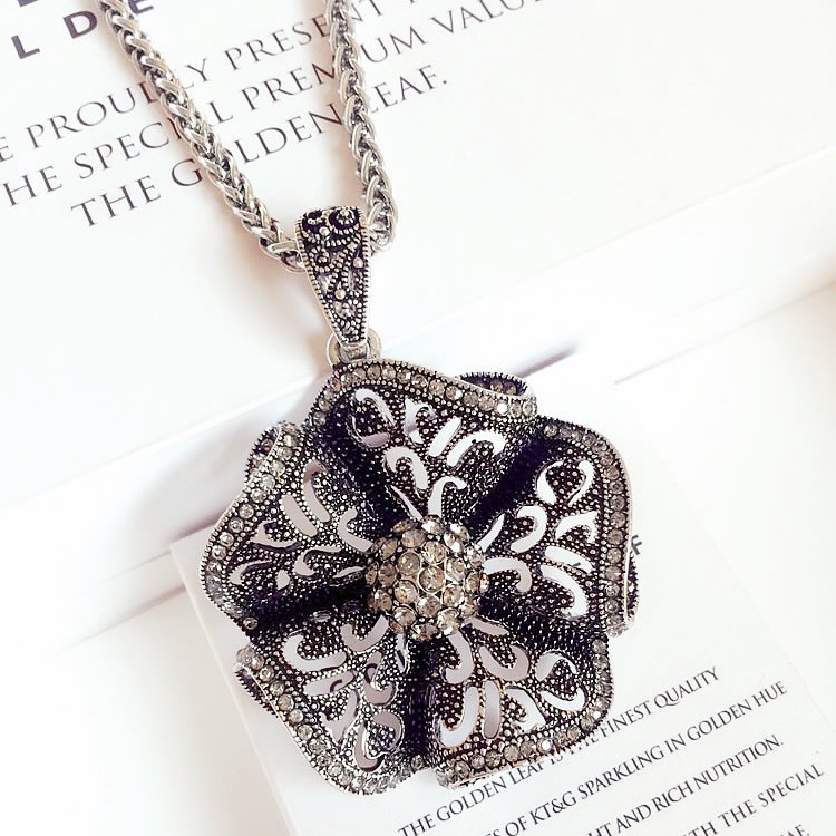 Japanese and Korean Retro Flower Versatile Decorative Necklace Women's Long Accessories Autumn and Winter Sweater Chain Jewelry Wholesale Exquisite