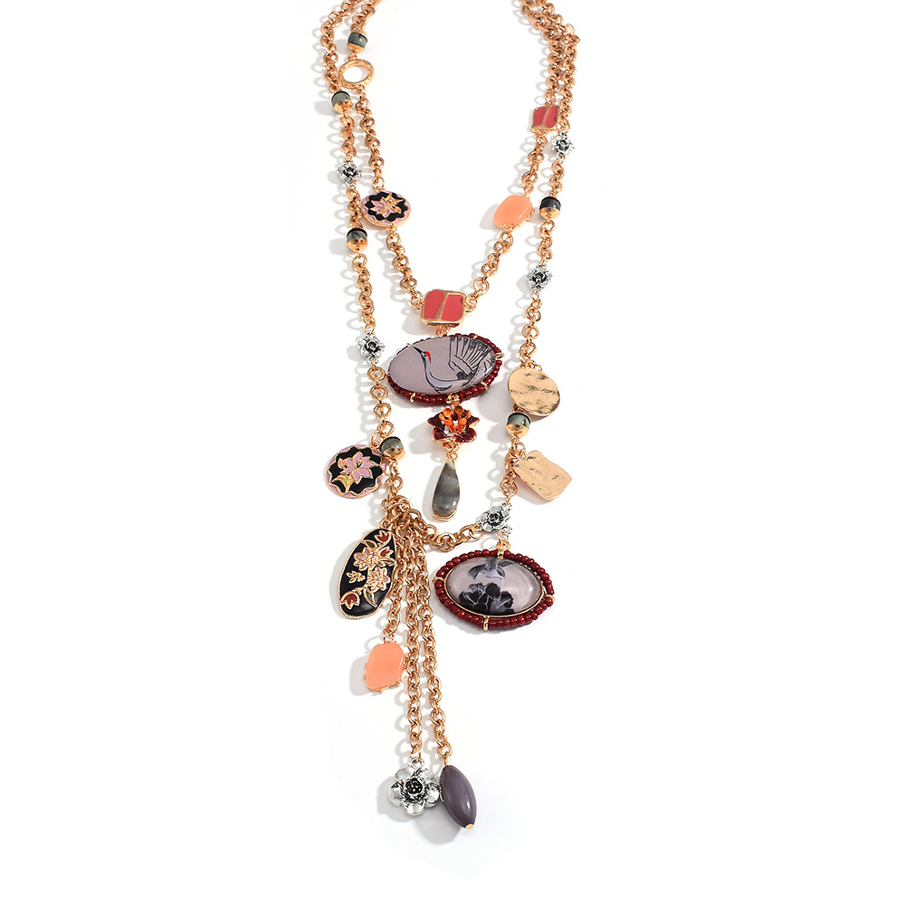 Autumn and Winter New Bohemian Flower Pendant Multi-Layered Resin Pendant Necklace European and American Exaggerated Retro Necklace