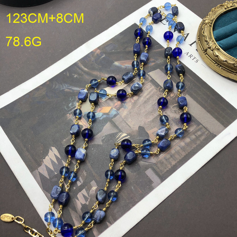 Vintage Blue Series Necklace Woolen Chain French Bohemian Ethnic Style Lapis Lazulet Wrinkable Mid-Length Necklace