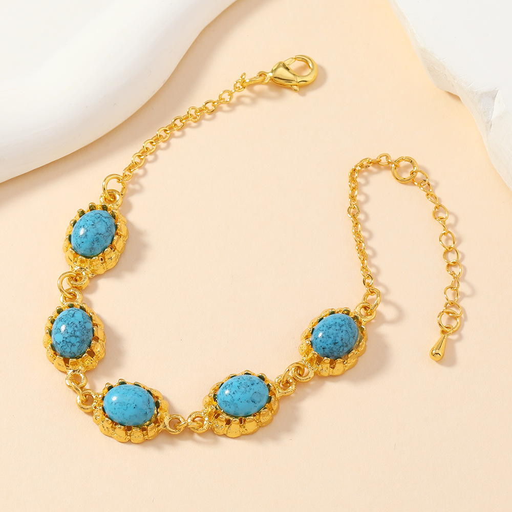 Vintage Yunnan Ethnic Style Blue Turquoise Bracelet Bohemian Tourism Decorations Classical Zodiac Bracelet for Women