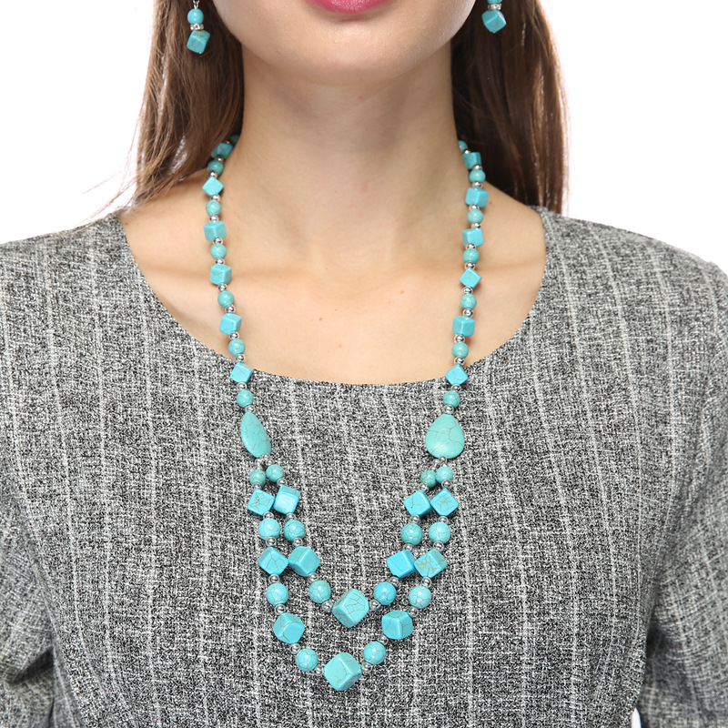 Bohemian handmade beaded necklace turquoise necklace sweater chain multi-layer beaded pendant vintage long necklace women