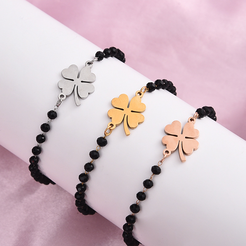 2024 Cross-border Stainless Steel Jewelry Four-leaf Clover Bracelet Women's Simple Couple Bracelet Rose Gold Bracelet Niche