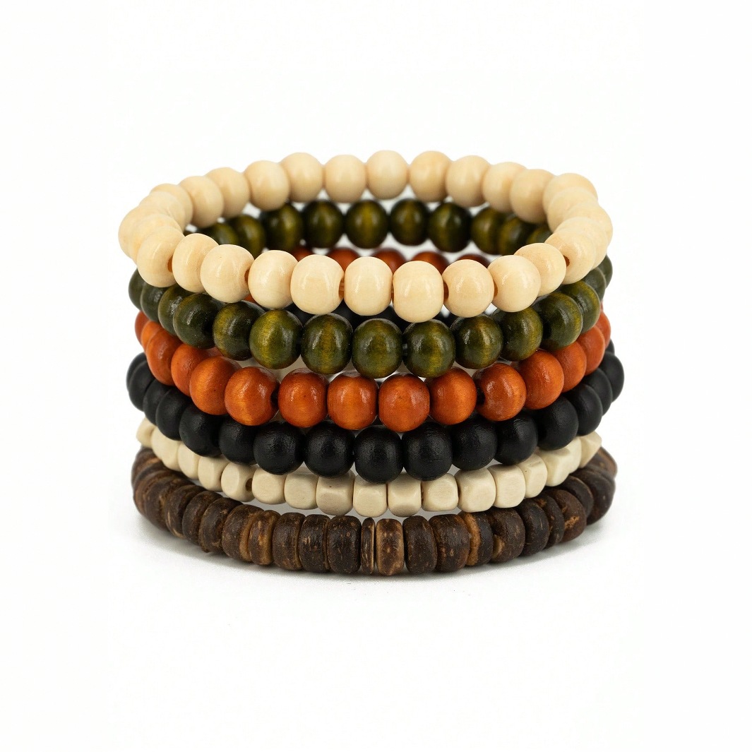 Cross-Border Hot-Selling Xiyin Temu Bohemian Wooden Beads Handmade Beaded Bracelet Men's Retro Style Multi-Layer Elastic