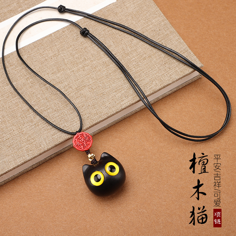 Ebony lucky cat adjustable necklace long cute cat sweater chain simple retro men and women all-matching accessories