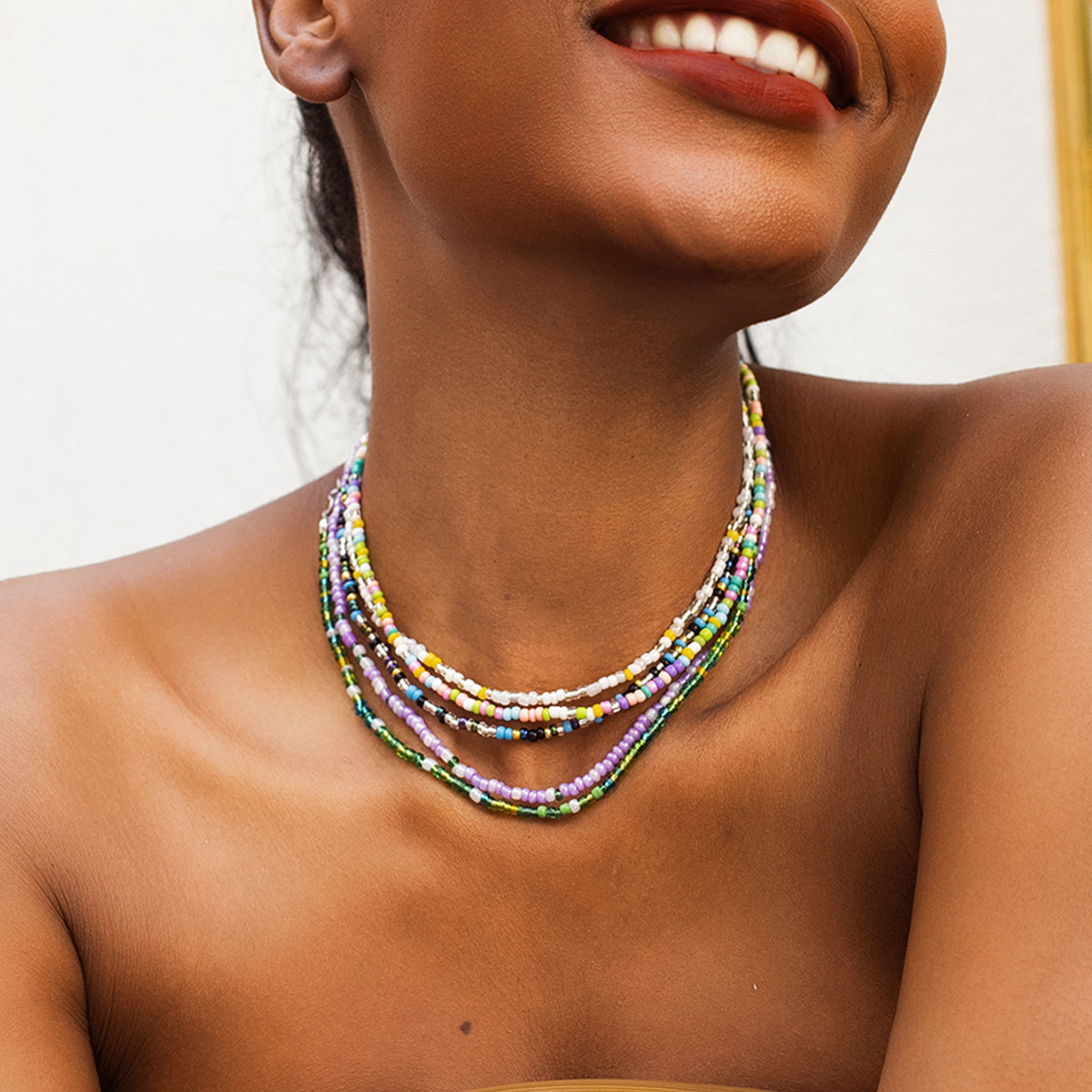 European and American cross-border jewelry Bohemian color rice beads ladies short necklace neck link multi-layer bracelet wholesale