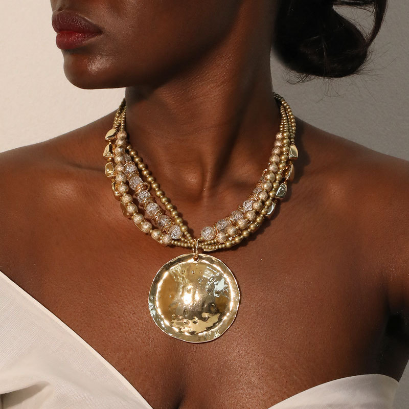 Cross-Border Jewelry Necklace Accessories Retro Women's Sweater Chain Necklace Bohemian Clavicle Chain Pendant Resin Pendant