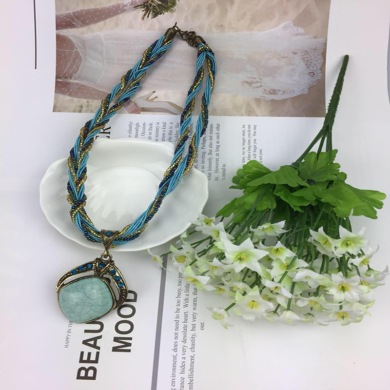 European and American Cross-Border Personalized Retro Necklace Bohemian Style Twist Bead Chain Water Drop Pendant Factory Direct Supply
