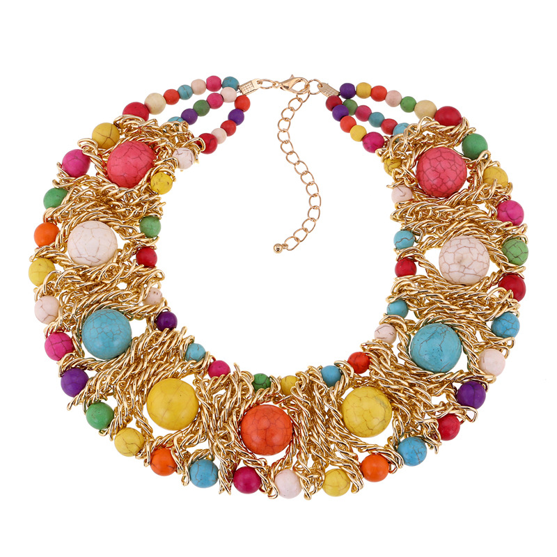 Qiman Bohemian ethnic style hand-woven necklace light luxury Natural Stone Hollow necklace 3 colors NK-01356
