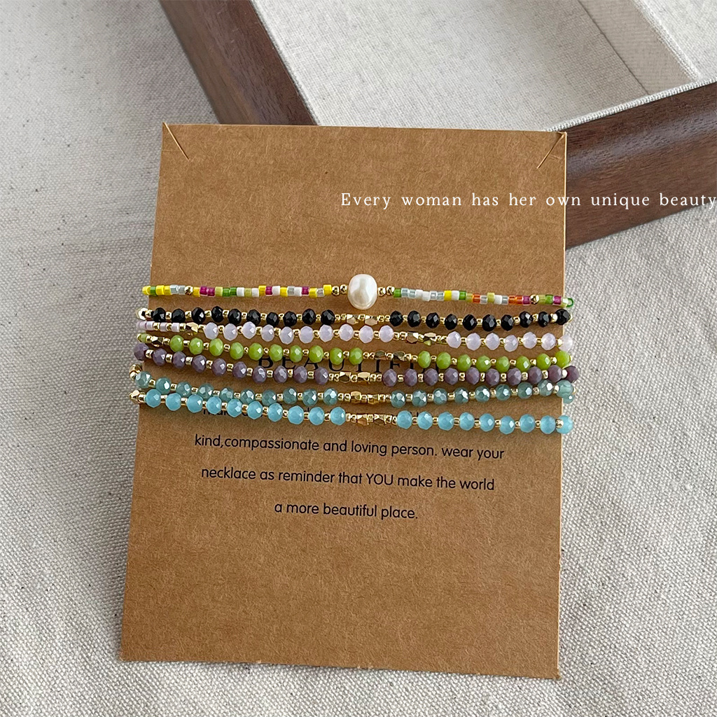 Bohemian Style Fresh and Sweet Handmade Glass Crystal Bracelet Women's Mori Style Holiday Simple Bracelet Factory