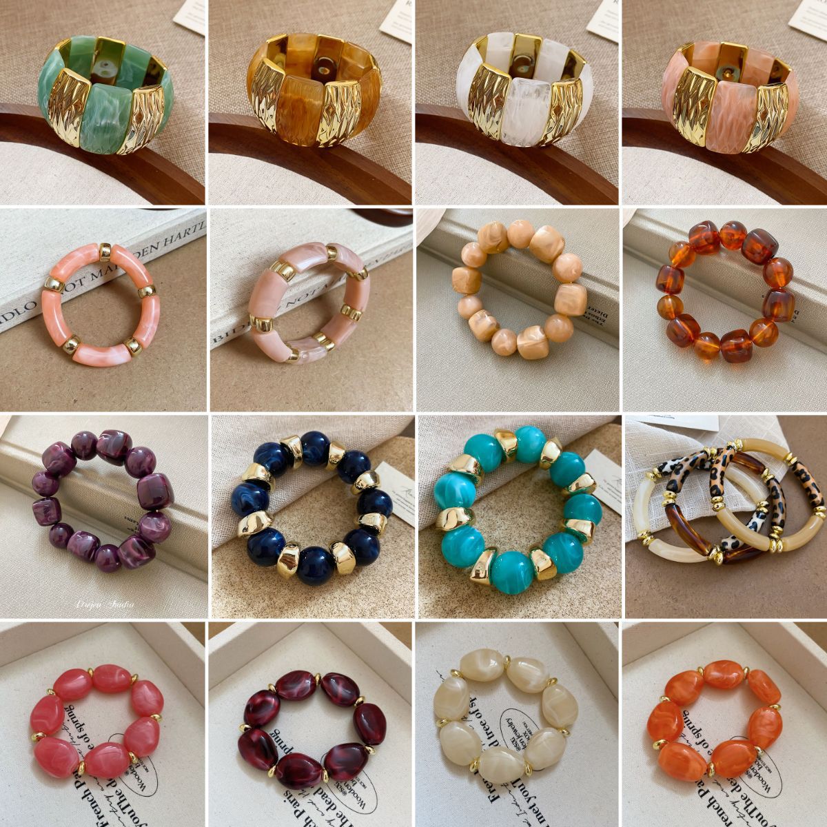 Acrylic Chain Geometric Beaded Bracelet Bohemian Retro Ethnic Style Bracelet Niche High-End Jewelry for Women