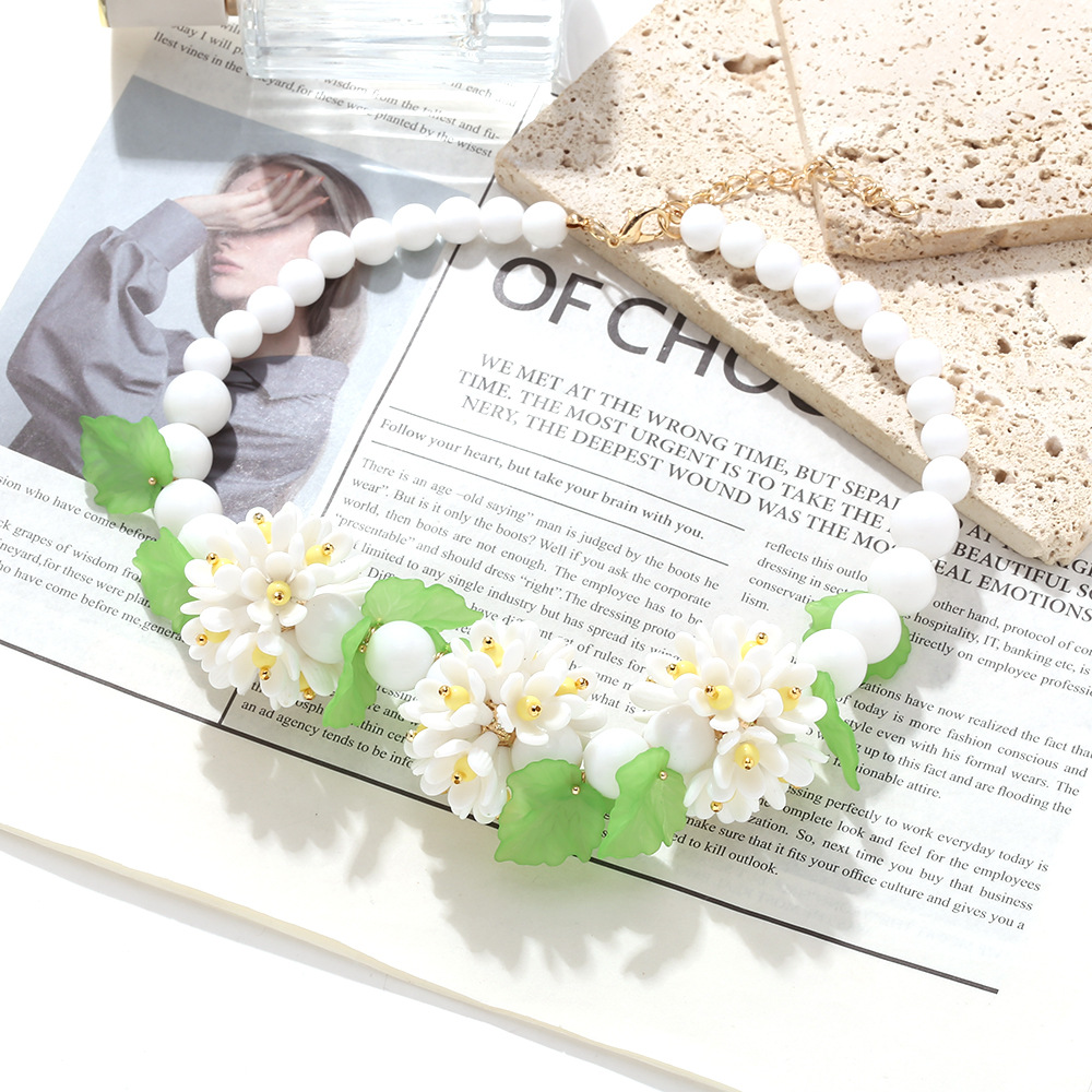 European and American Fashion Versatile Bohemian Handmade Spliced Flower Ball Forest Style Fresh Bead Flower Necklace