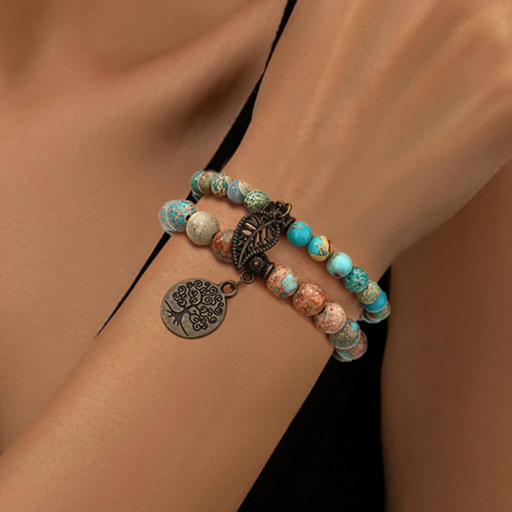 Bohemian Style Retro Colorful Natural Stone Beaded Bracelet Niche Design High-End Turquoise Non-Fading Bracelet