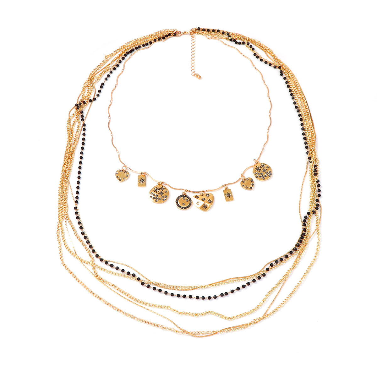 Za Cross-Border Bohemian Style Trendy Personalized Retro Stacked Beaded Multi-Layer Chain Geometric Pendant Necklace