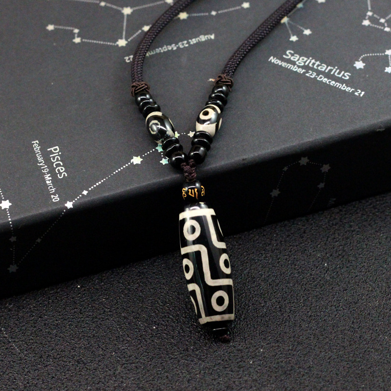 Natural Agate Nine-eye Bead Necklace Xizang Ethnic Style Bead Pendant All-match Agate Sweater Chain Live Item