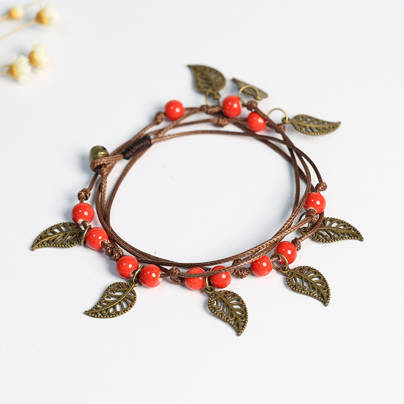 Mori Ethnic Style Ceramic Hand Rope Jingdezhen Bracelet Female Bohemian Bell Bracelet Antique All-match Elegant