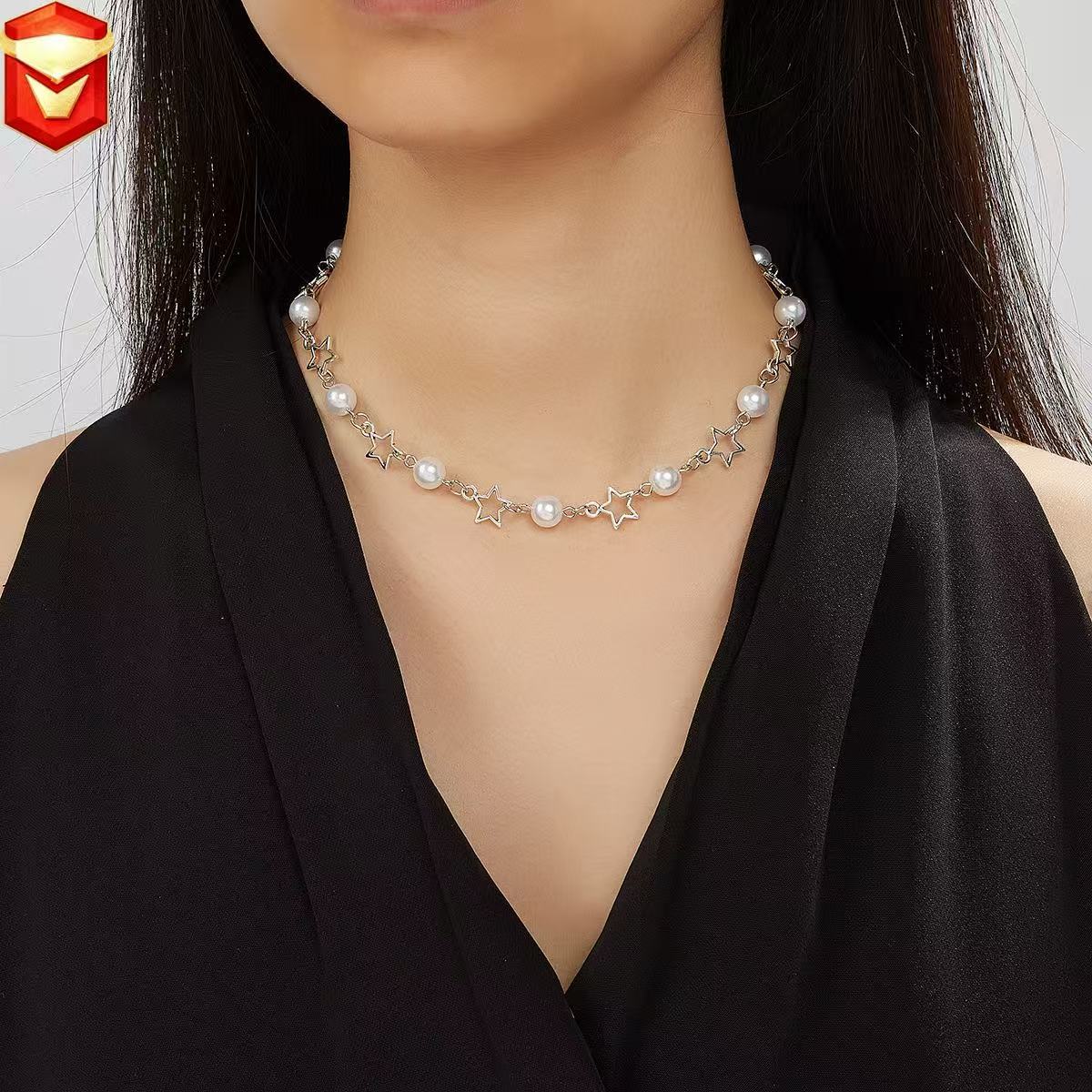 European and American Cross-Border Bohemian Simple Pearl Elegant Star-Shaped Bead Necklace Cut Out Five-Pointed Star Clavicle Necklace