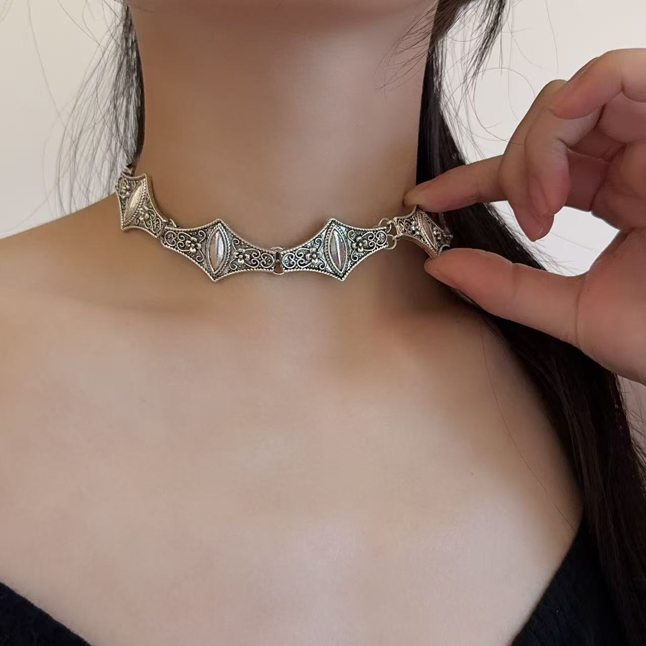 Metal New Bohemian Necklace Pattern Design Clavicle Necklace Simple Fashion Short Style Personalized Versatile Necklace