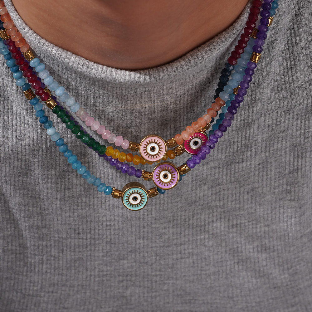 Cross-border New Color Crystal Healing Necklace Europe and America Devil's Eye Necklace Bohemian Natural Stone Necklace