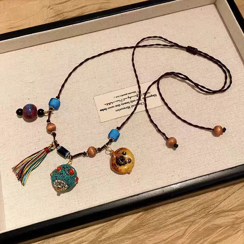 Ethnic Style Bohemian Style Multi-Treasure Necklace Nepalese Lucky Ball Multi-Treasure Tassel Necklace Hot Style Wholesale