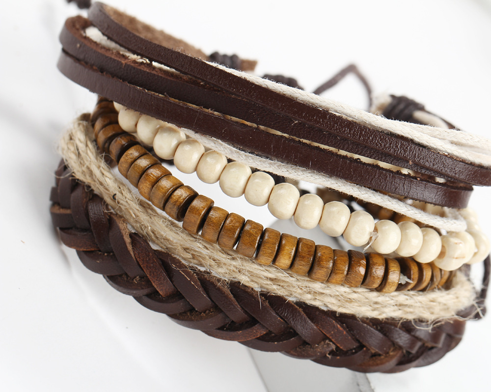 European and American fashion vintage bracelet beaded hemp rope leather adjustable DIY bracelet popular jewelry wholesale factory