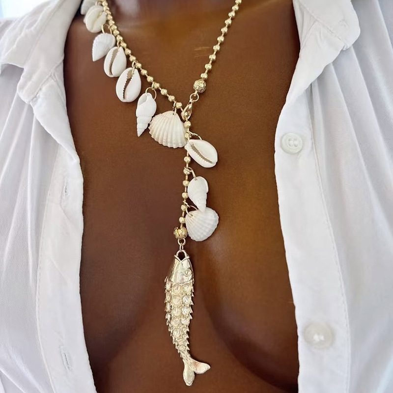 New Bohemian Style Shell Beaded Necklace, Retro High-End Design Clavicle Chain, Elegant Ethnic Sweater Chain