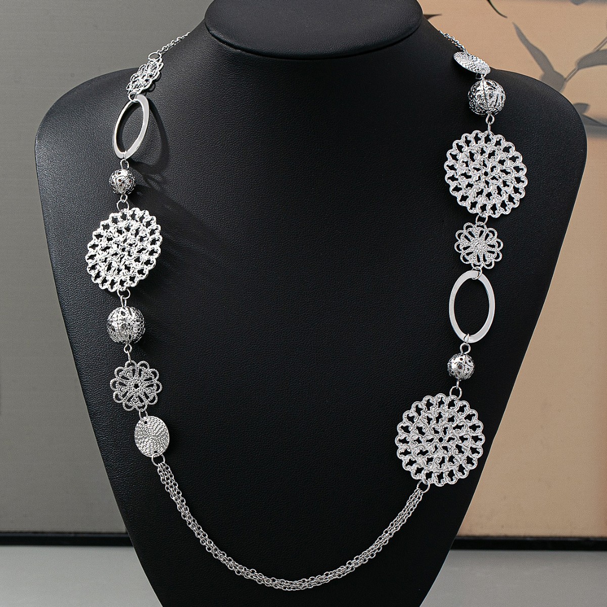 European and American Stylish French Accessible Luxury Simple Geometric Ring Disc Splicing Long Necklace Sweater Chain Bohemian Style