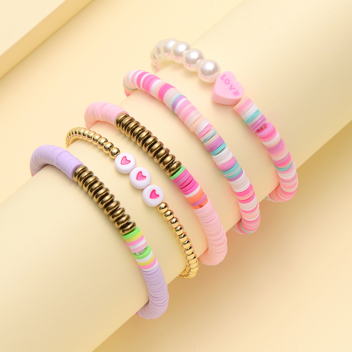 Cross-border new bohemian colorful small fresh soft pottery bracelet LOVE beaded 5-piece set bracelet wholesale