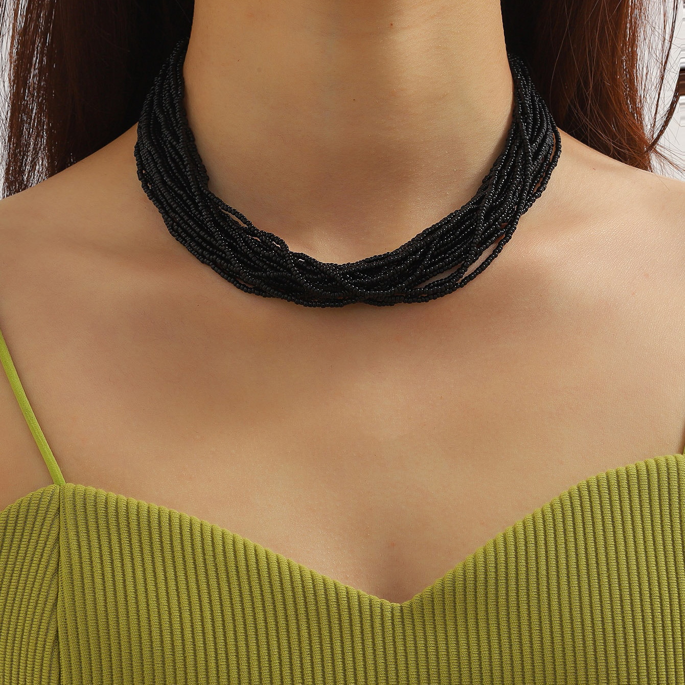 Bohemian Style Rice Beads Women's Multi-Layered Necklace Retro Winding Clavicle Chain Fashionable Personality High-End Necklace