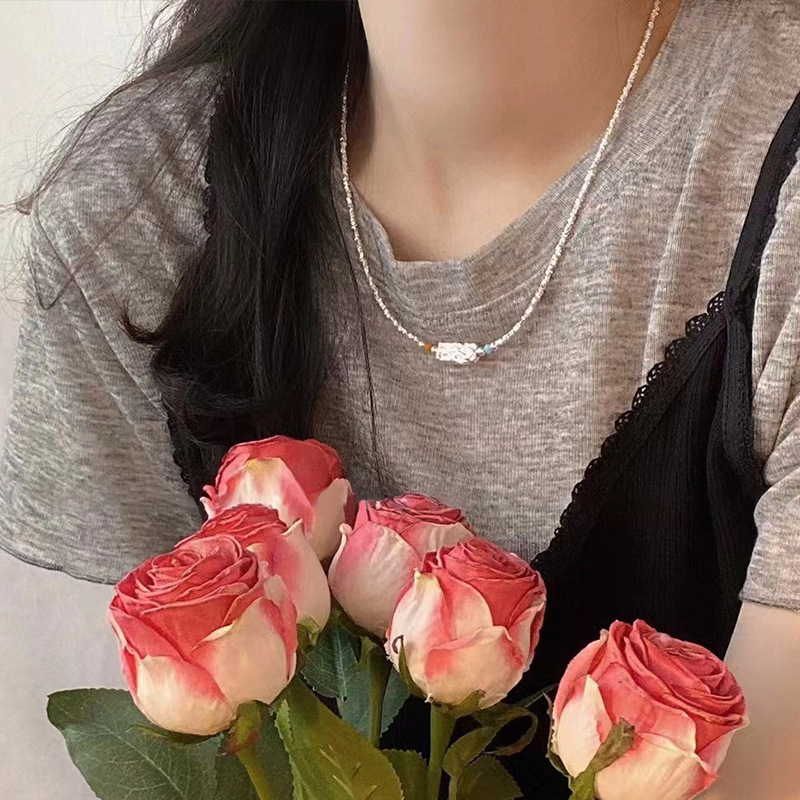 Cross-Border fashion bohemian style flower rice beads necklace women's colorful rice beads beach neck chain wholesale