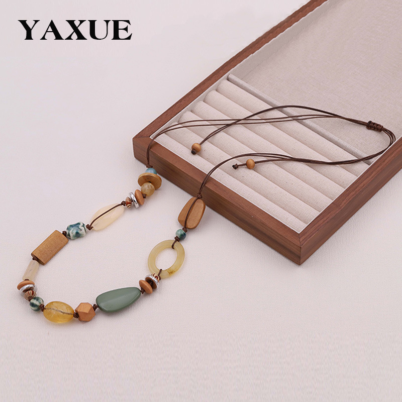 Bohemian Retro Ceramic Necklace for Women, New Chinese Style, Exotic Ethnic Style, High-End Long Sweater Chain Accessories