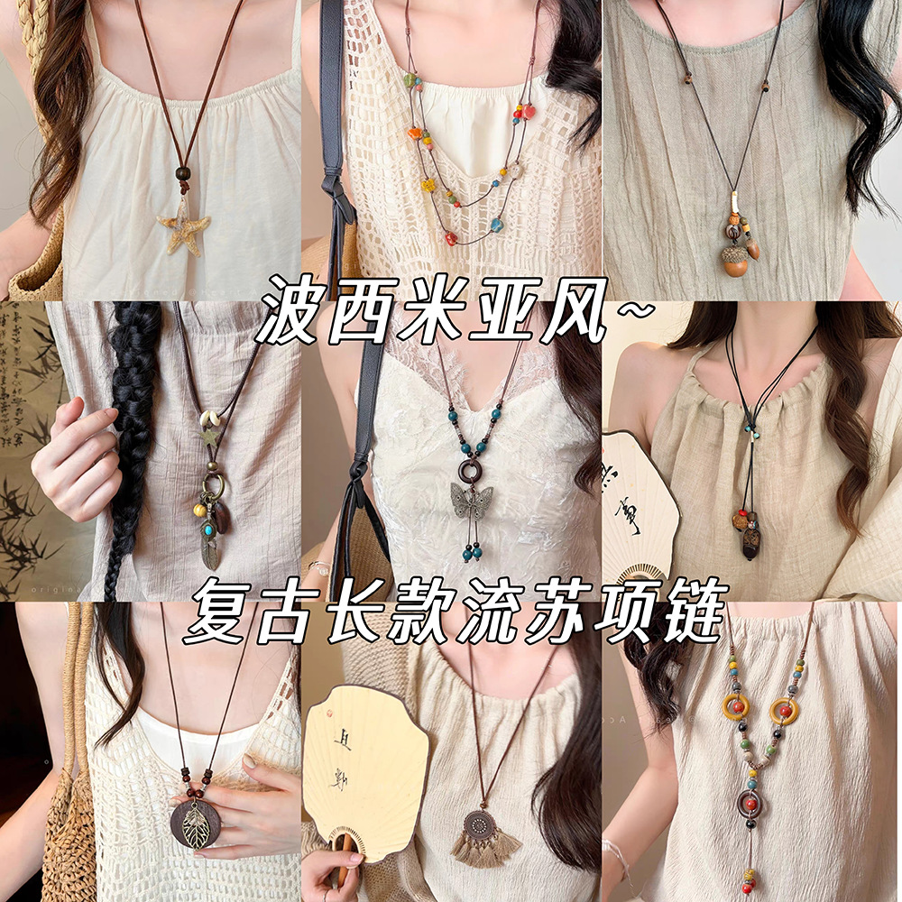 Bohemian Style Retro Necklace for Women New Chinese Style Exotic Ethnic Style High-End Long Sweater Chain Accessories Wholesale