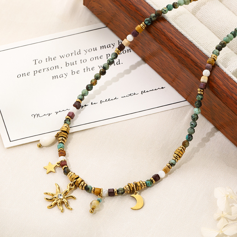 Early Autumn Retro Ethnic African Pine Egg Yellow Stone Beaded Necklace Niche Bohemian Star Moon Pendant Necklace
