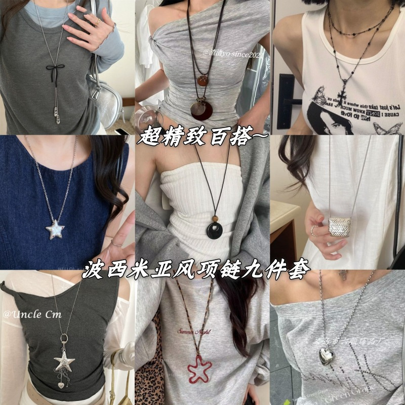 European and American Cross-border Simple Gravel Necklace Bohemian Style Natural Gravel Necklace Pendant Clavicle Chain Jewelry Accessories