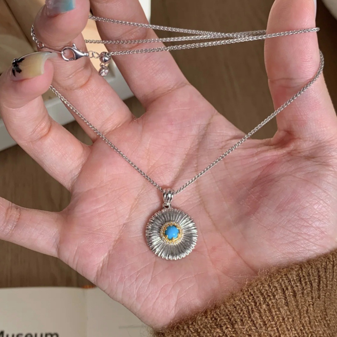 Quan Zhilong's Same Style * Buchi Style Brushed Turquoise Daisy Necklace Retro Exquisite Accessible Luxury High-End Clavicle Chain