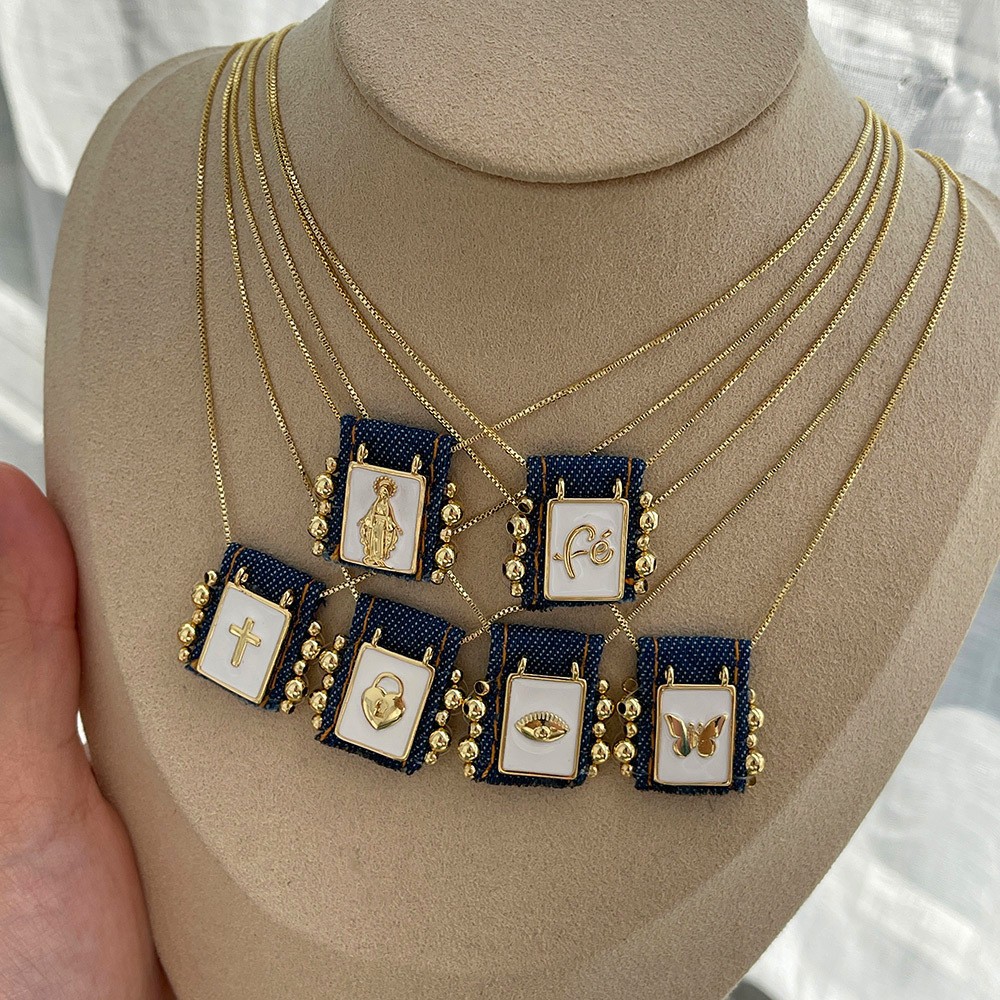 Cross-Border Hot Selling New Square Brand Bohemian Literary Retro Style Tarot Cross Necklace Women's Rope Necklace