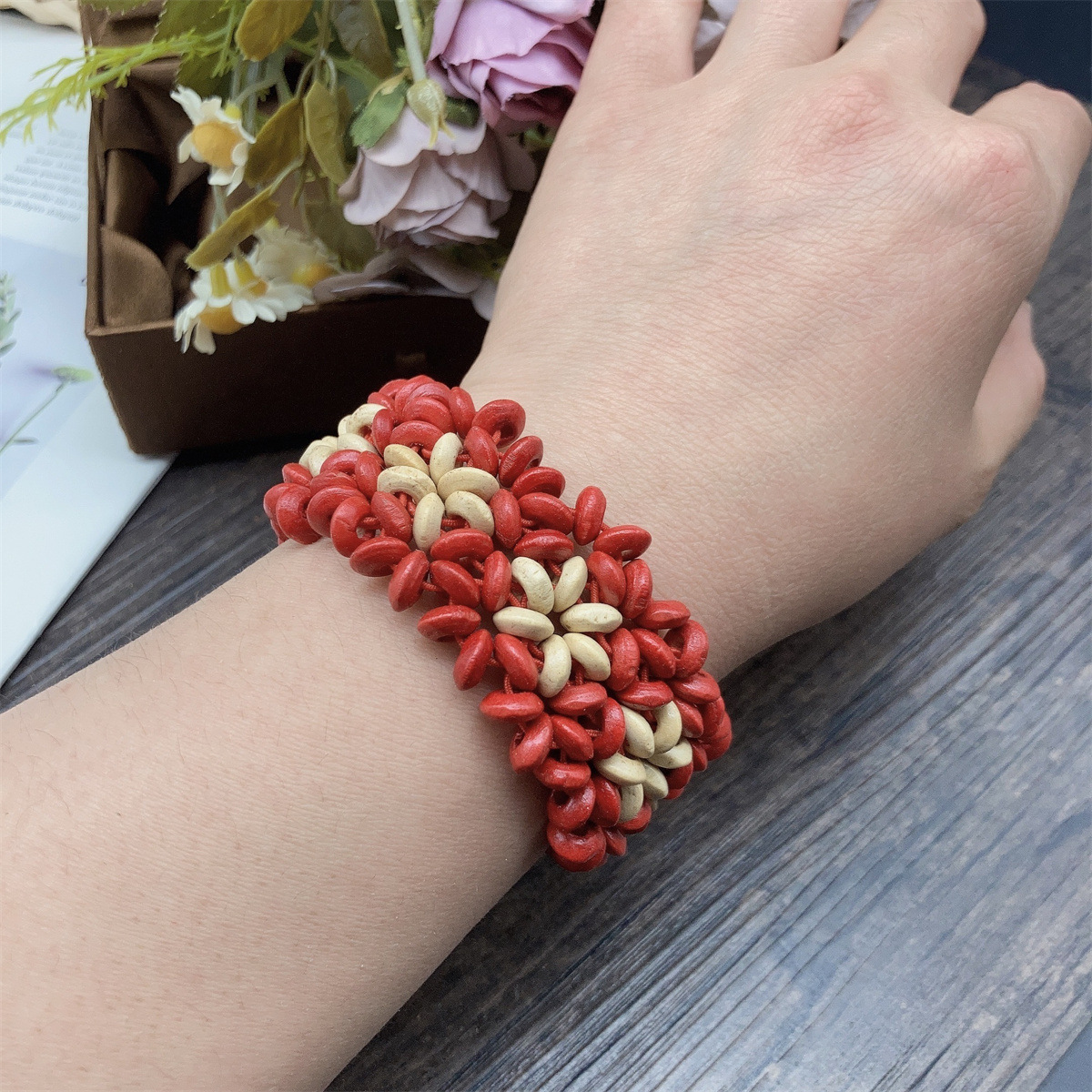 Bohemian vintage elastic thread wooden bead bracelet cross-border popular ethnic style hand-woven bracelet bracelet