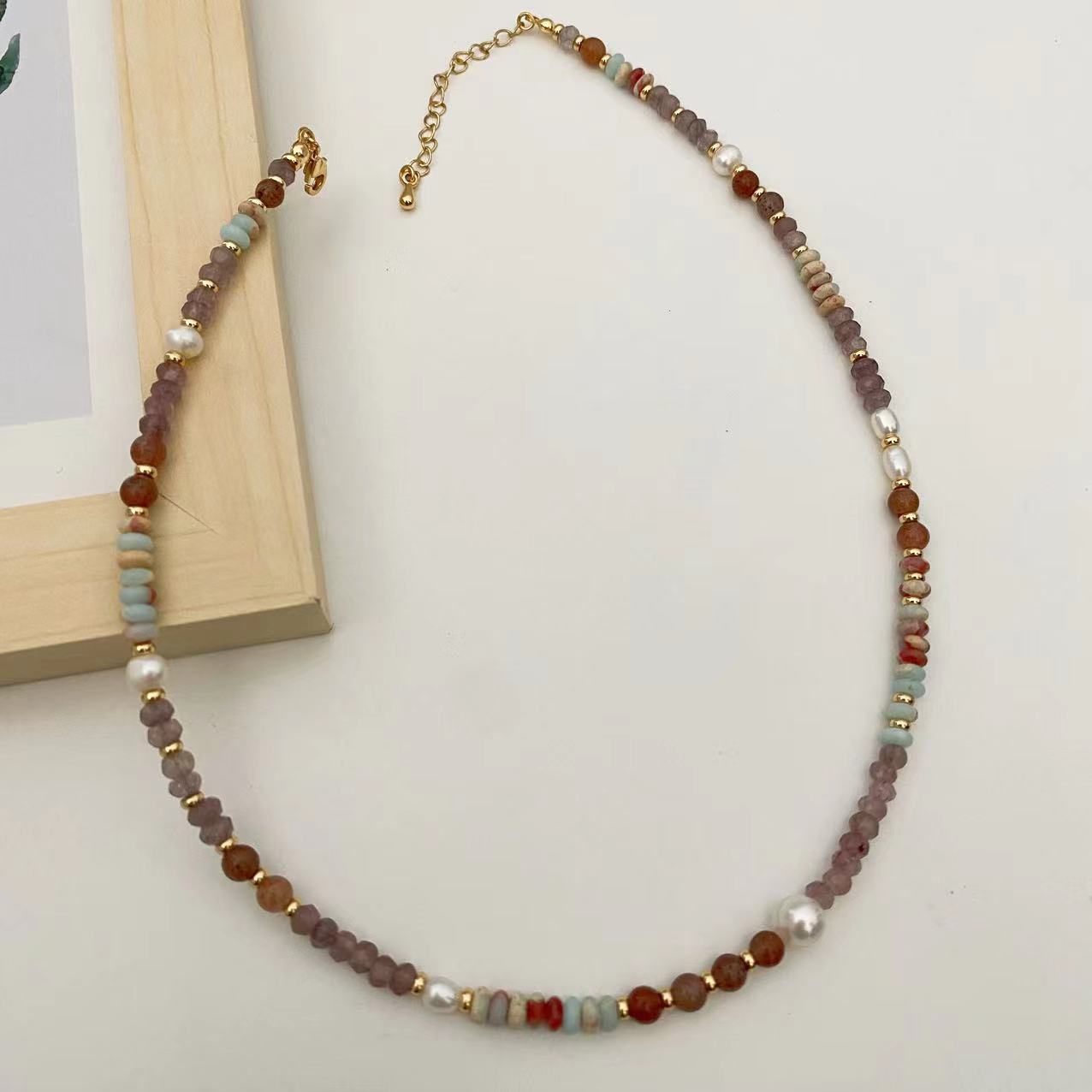 European and American new bohemian Retro colored stone necklace handmade beaded pearl clavicle chain high-grade necklace