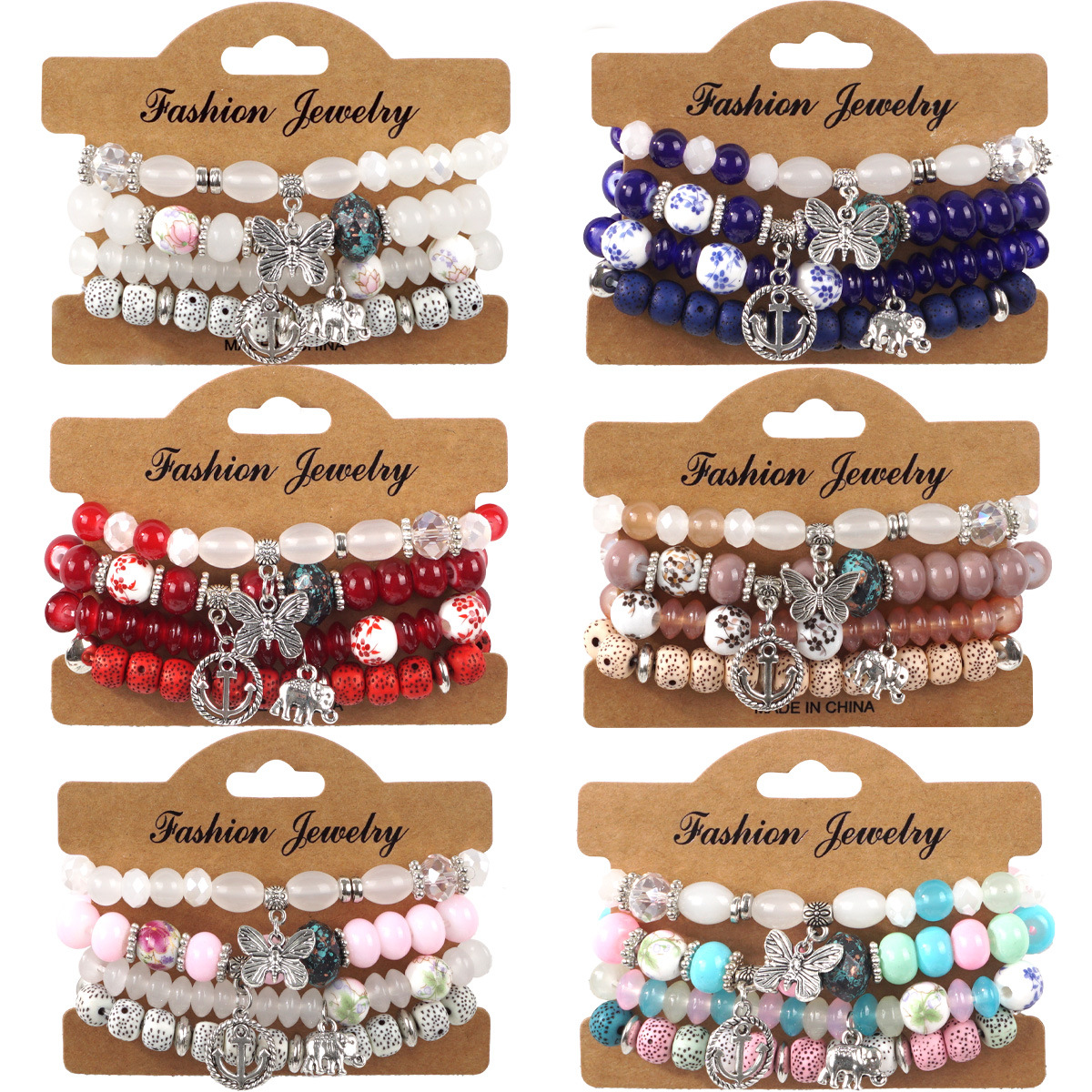 Cross-Border Popular Bohemian Bracelet Retro Beaded Stacked Anchor Alloy Pendant Bracelet Manufacturer Bracelet Wholesale