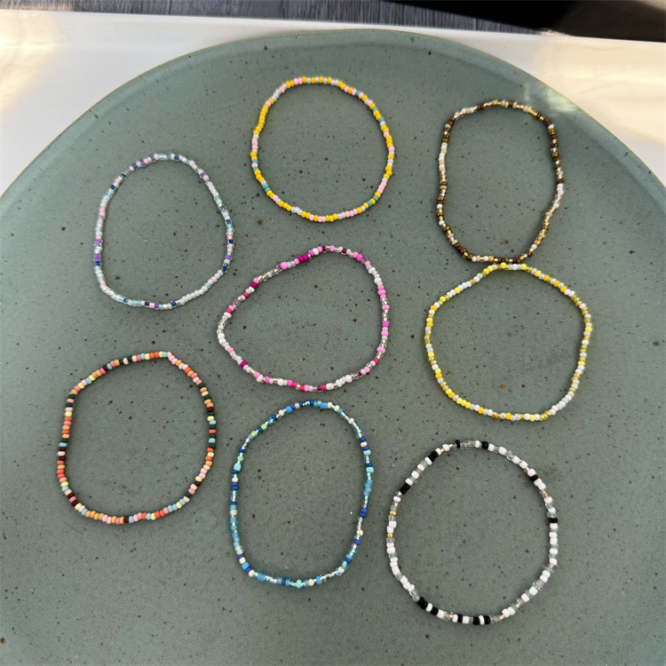 New Korean Style Candy Color Beaded Bracelet Distinctive Bohemian Style Niche Stretch Rice Beads Bracelet for Women