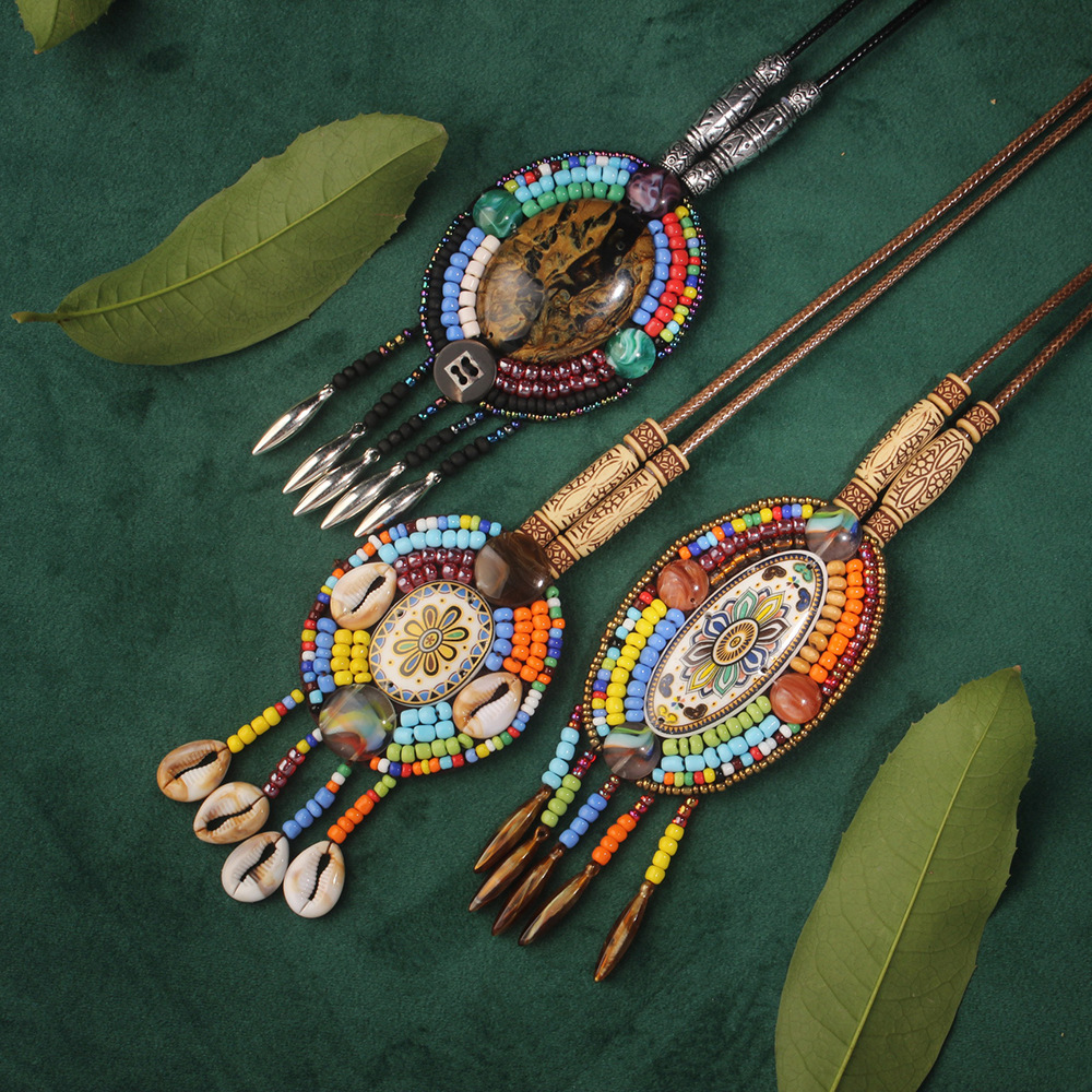 Cross-border ethnic style vintage leather long necklace fashion Bohemian sweater chain niche personality tassel necklace