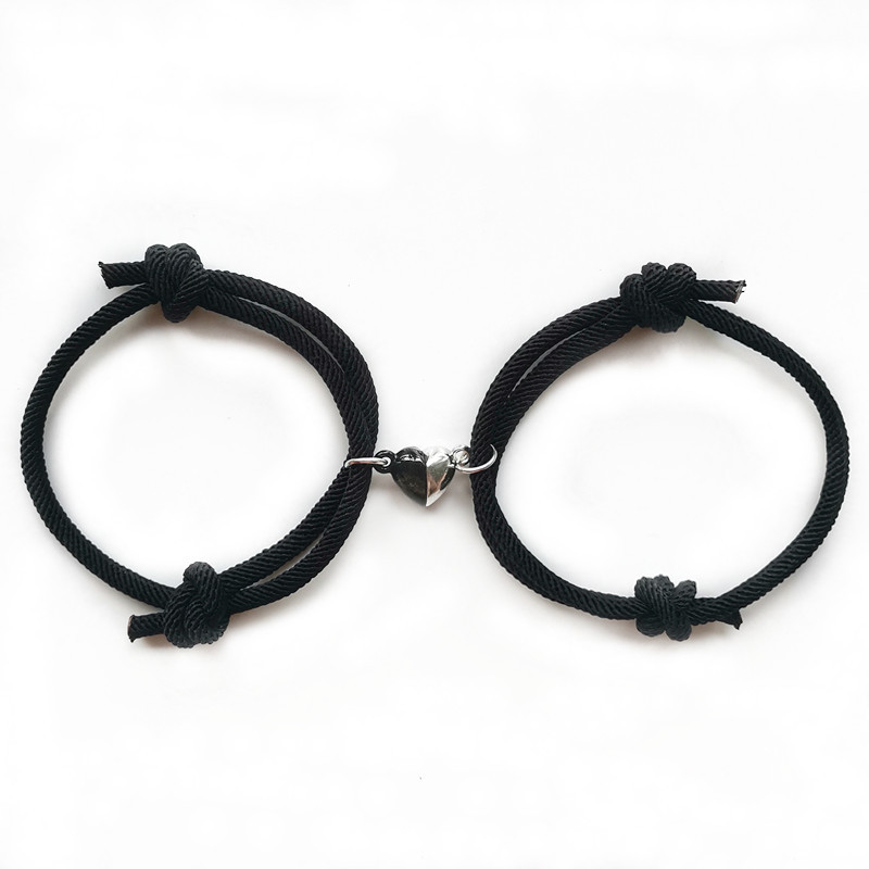 Couple's Bracelet Black Silver Heart Magnetic Bracelet Stitching Magnet Love Suction Internet Red Style Hip-Hop Bracelet