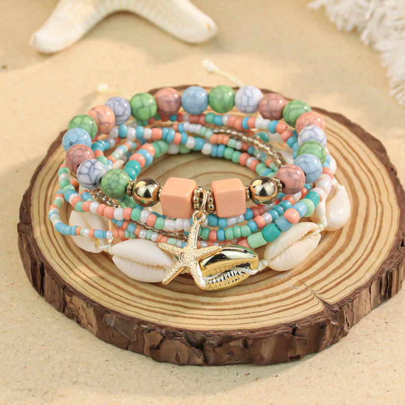 Ocean Style Stacked Rice Bead Bracelets Ins Niche Handmade Shell Bracelet Set Bohemian Contrasting Color Bracelets Trendy