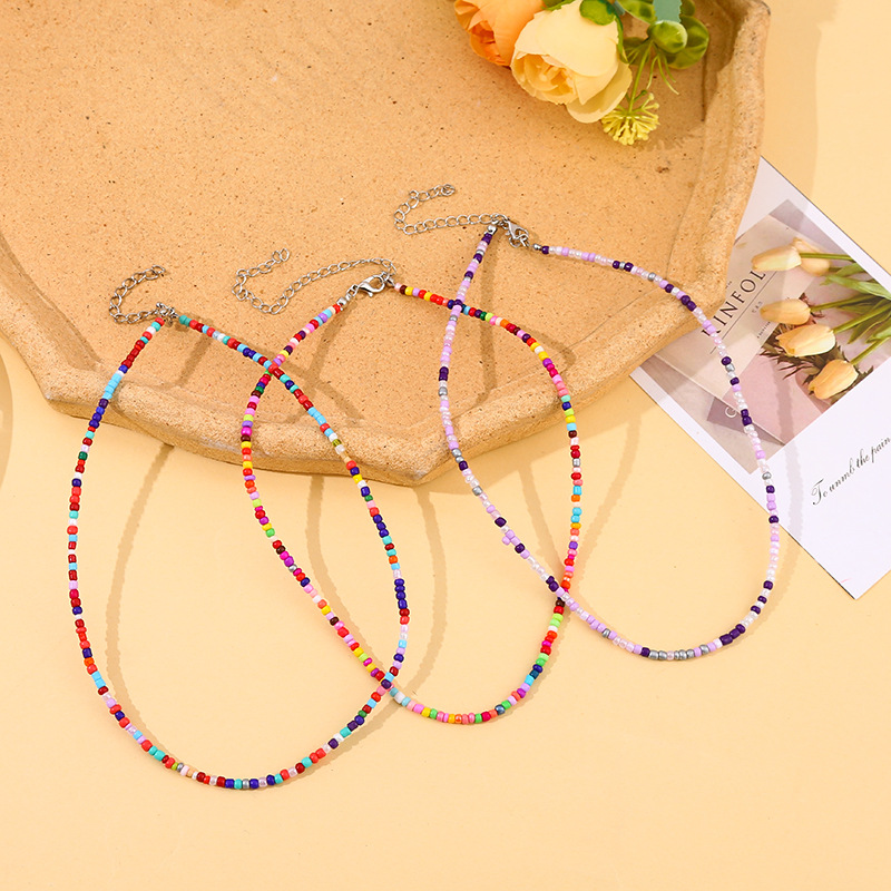 Necklace for Women 2024 New Cross-border Colorful Accessible Luxury Elegant Niche Design Simple Bohemian Rice Bead Jewelry Necklace