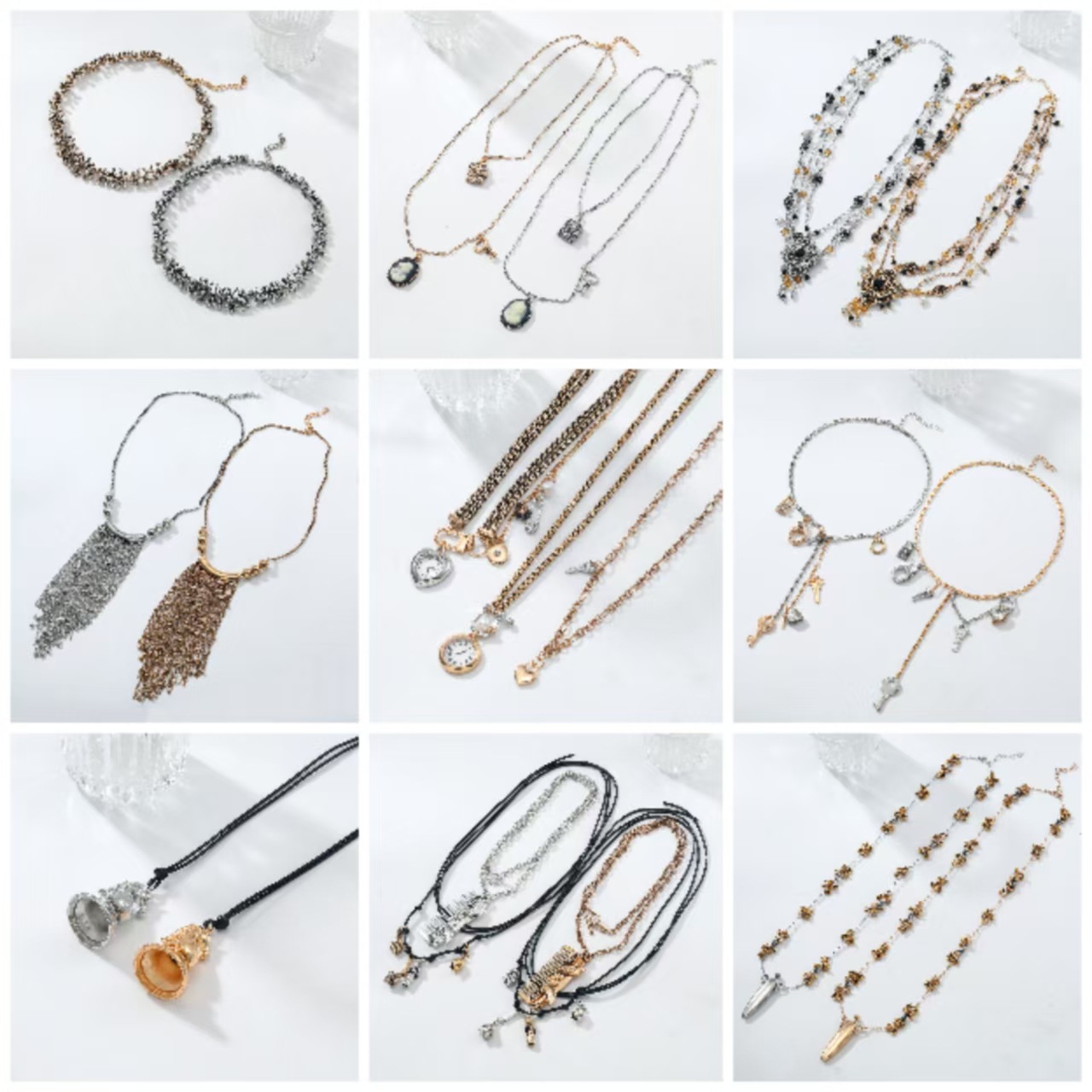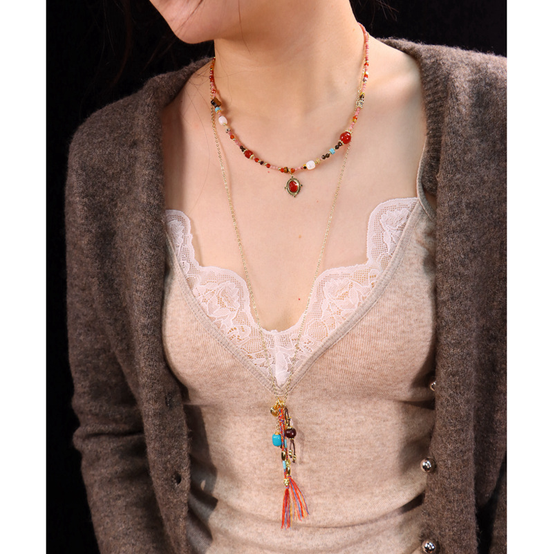 Diamond Crystal Collar Long Chain Pendant Retro Stacked Multi-Layer Necklace Women's Clavicle Chain Bohemian Holiday Style Women