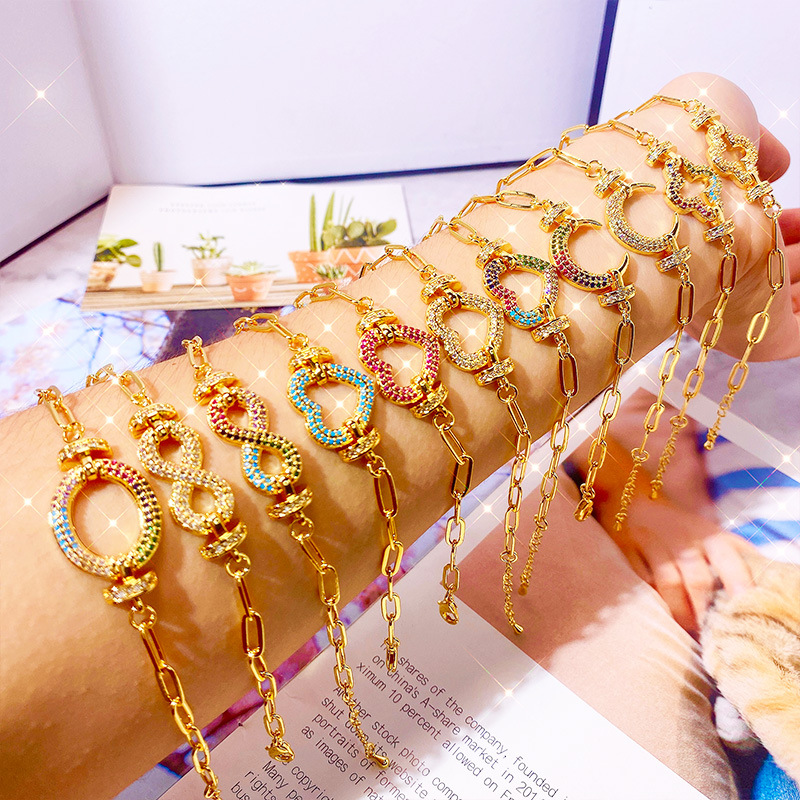Europe and the United States new personalized color zircon bracelet copper 18k simple temperament bracelet geometric love flower jewelry
