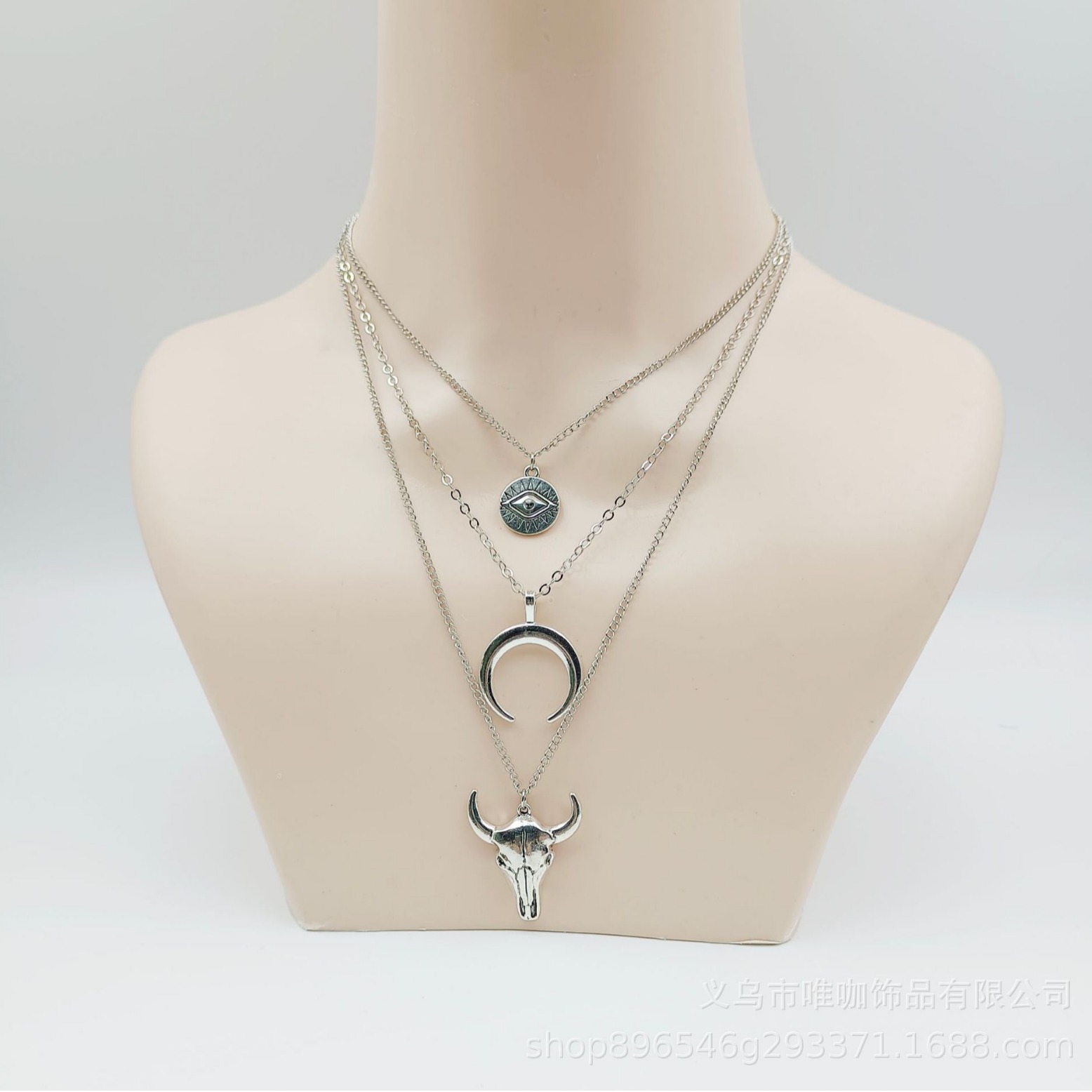 European and American Cross-Border Retro New Bull Head Moon Eyes Creative Multi-Layer Necklace Fashionable Personality Bohemian Necklace