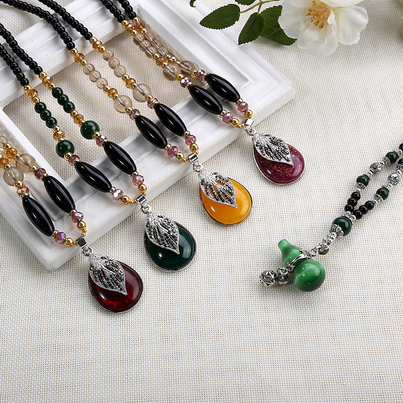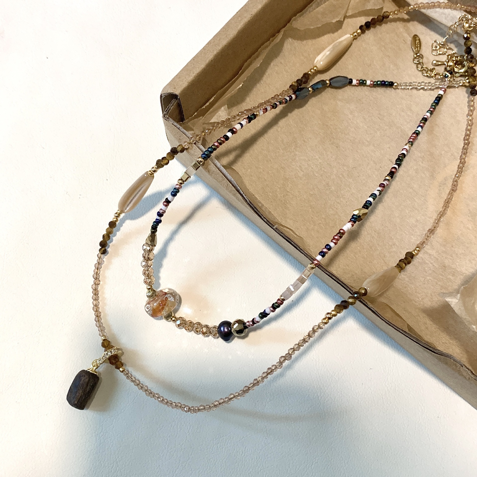 Maillard Beaded Necklace Bohemian Natural Stone Stacked Clavicle Chain Accessible Luxury High-End European and American Retro Necklace